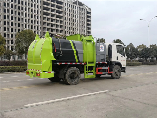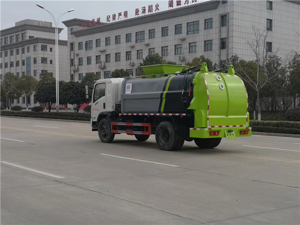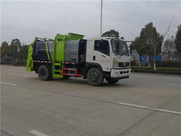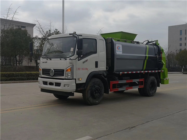 先進的電控系統 采用進口PLC(可編程序控制器)集成控制,控制電路在PLC內生成,采用邏輯回路保證各操作指令按順序執行,同時保證各操作指令之間互鎖,外部只有線路連接,降低了故障發生率,避免了誤操作造成的事故,提高了可靠性;特別設置的緊急制動按鈕可使餐廚垃圾壓填機構在任何狀態或任何位置停止,保障作業人員、設備的安全;方便的操作控制 作業控制盒分別安裝在駕駛室內和車尾,駕駛室內的作業控制盒可控制推擠卸料和選擇操作模式(如自動或手動),車尾的作業控制盒則控制壓填機構和翻桶機構的作業,使用操作十分方便。特別是在垃圾填埋場,作業人員無須下車即可完成卸料和污水排放。可根據用戶要求選裝有線遙控裝置;多種翻桶(斗)機構 不同用戶可根據不同的餐廚垃圾搜集方式,選裝不同的翻桶(斗)機構:翻標準餐廚垃圾鐵桶ZBT59003-88(300升)、塑料餐廚垃圾桶(240升)、隨車小餐廚垃圾斗(800升)、密封遮式餐廚垃圾斗(1400升)、大餐廚垃圾斗(3350升)。