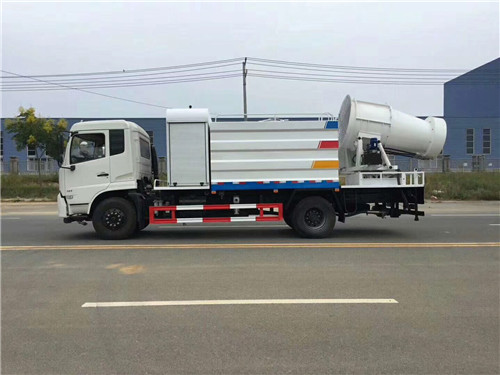 我廠生產的抑塵車根據罐體容積不同,采用4-6mm厚武鋼Q235碳鋼板制作,罐體內置防浪板,避免車輛急剎時液體前涌造成的安全隱患,罐體頂部開有人孔。人孔既可以作為工作人員進行罐內檢修的進出口,也可以作為加水孔用于向罐內加注水;隨車配備大功率專用灑水泵(標配隨州億豐灑水車,選配杭州威龍灑水泵),比同類灑水泵壓力大、吸程遠、使用壽命長,克服其他灑水泵易被雜物纏住、壓力小、吸水慢的缺點。整車帶前沖(噴)、后灑、側噴、罐體后部帶工作臺,平臺上安裝綠化高壓灑水炮。灑水炮可全方位旋轉,可連續調成直沖狀、開花狀、大雨、小雨、毛毛雨、半霧狀水流,以適合不同狀況下的需求。
