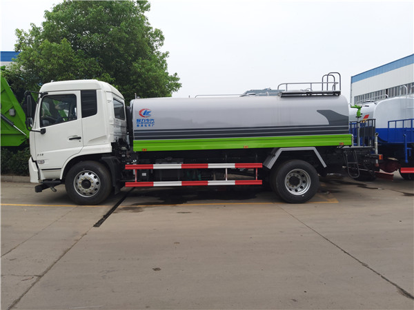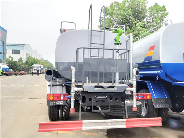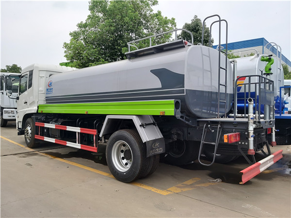 東風天錦灑水車標配前沖(噴)后灑,灑水寬度≥14米,帶側(cè)噴,罐體后帶工作平臺,平臺上安裝綠化灑水炮,灑水炮可全方位旋轉(zhuǎn),射程≥28米,可連續(xù)調(diào)成直沖狀、大雨、小雨、毛毛雨,帶安全護欄,配備專用灑水泵,