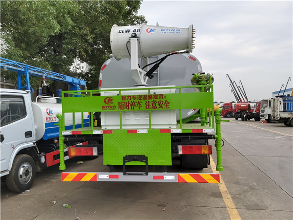 東風灑水車、綠化噴灑車專用功能:綠化環衛多功能,適合于城市小區工廠的綠化環衛用,采用全國質量領先的大功率專用灑水泵。前沖(噴)后灑、帶側噴(花灑)、帶后工作平臺、平臺上安裝綠化灑水高炮(炮有大雨、中雨、毛毛雨、霧狀可調節),帶吸水管,帶消防接頭,帶自流閥,自吸自排,可選配20米綠化噴藥卷盤、高空作業、隨車吊貨運等功能。