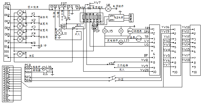 圖五 電氣控制系統(tǒng)電氣電控系統(tǒng)由控制箱、可編程序控制器(即PC機(jī))及各種控制、顯示、報(bào)警、照明等電路組成。由于